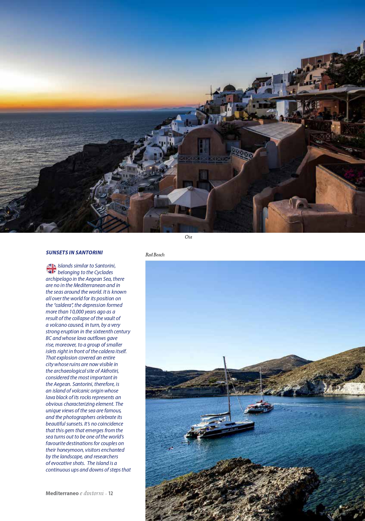 Rivista mensile "MEDITERRANEO E DINTORNI" Mediano Editore, n. 2020, servizio Santorini