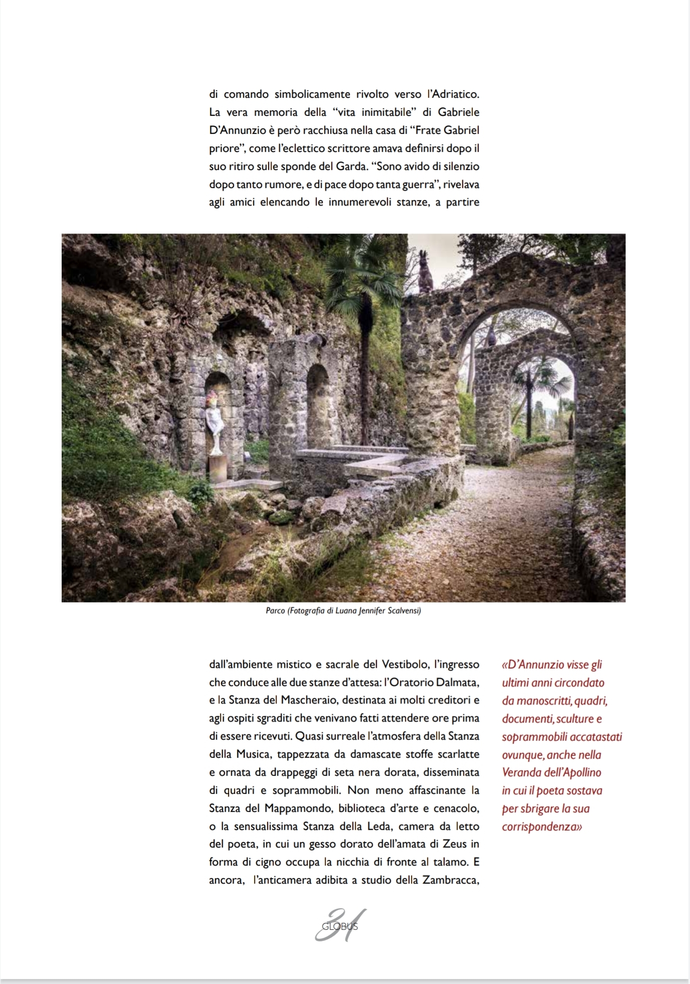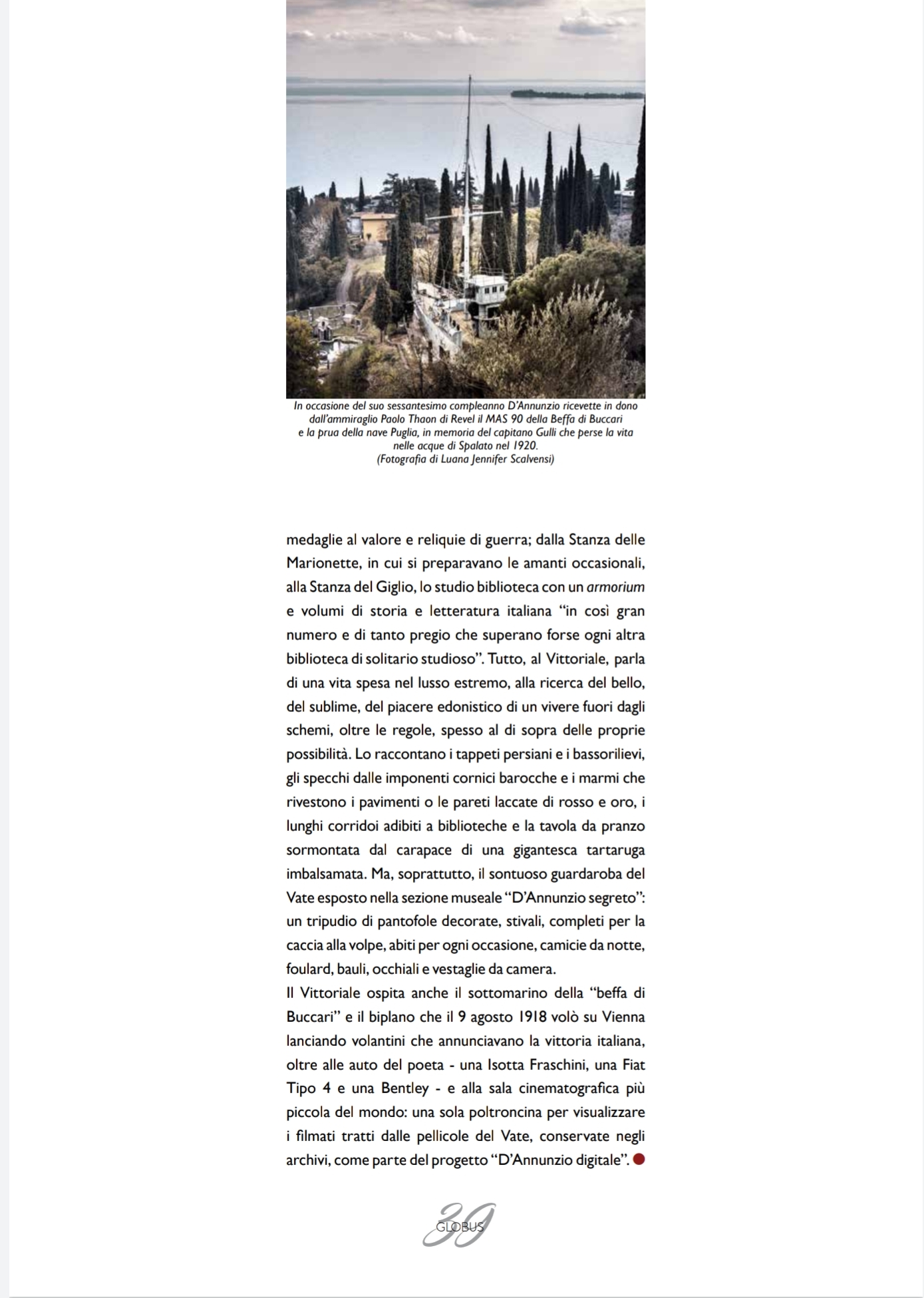 TRIMESTRALE "GLOBUS - IMMAGINI, PAROLE SUGGESTIONI DAL MONDO n.3 settembre 2021Servizio fotografico dedicato al Vittoriale degli Italiani