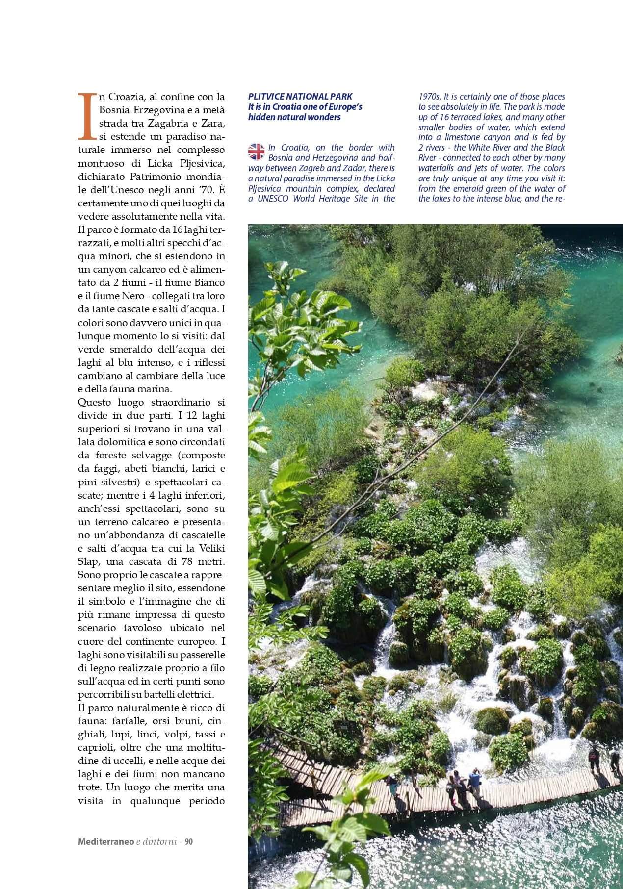 rivista mensile "MEDITERRANEO E DINTORNI" Mediano Editore, n.21 2020 servizio Plitvice
