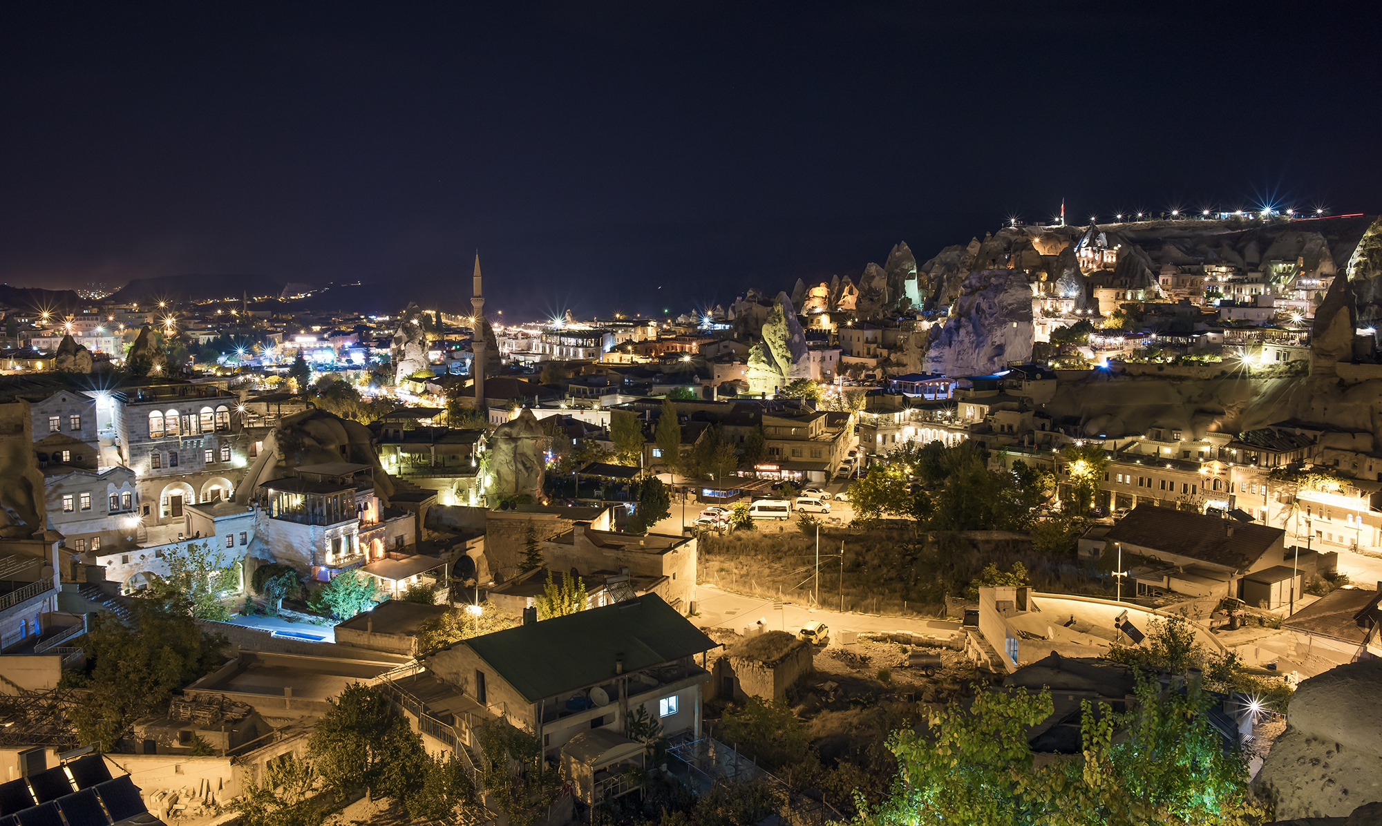 E’ proprio al calar del sole che piano piano si accendono le luci della cittadina di Goreme, la "capitale" della Cappadocia, trasformando il paese in un presepe a misura d’uomo. Ricca di alberghi, case, negozi e ristoranti incastonati tra i magici ed enormi “Camini di fata”, stranissime formazioni coniche laviche, lascia incantati per la sua atmosfera romantica che si gode dalle tante terrazzine dei numerosi hotels. Gli albergatori e ristoratori sono molto ospitali e i negozianti sono pronti ad accogliervi nelle loro botteghe con il thè, invitandovi a comprare tappeti, souvenir, tessuti dopo una piacevole contrattatazione del prezzo.