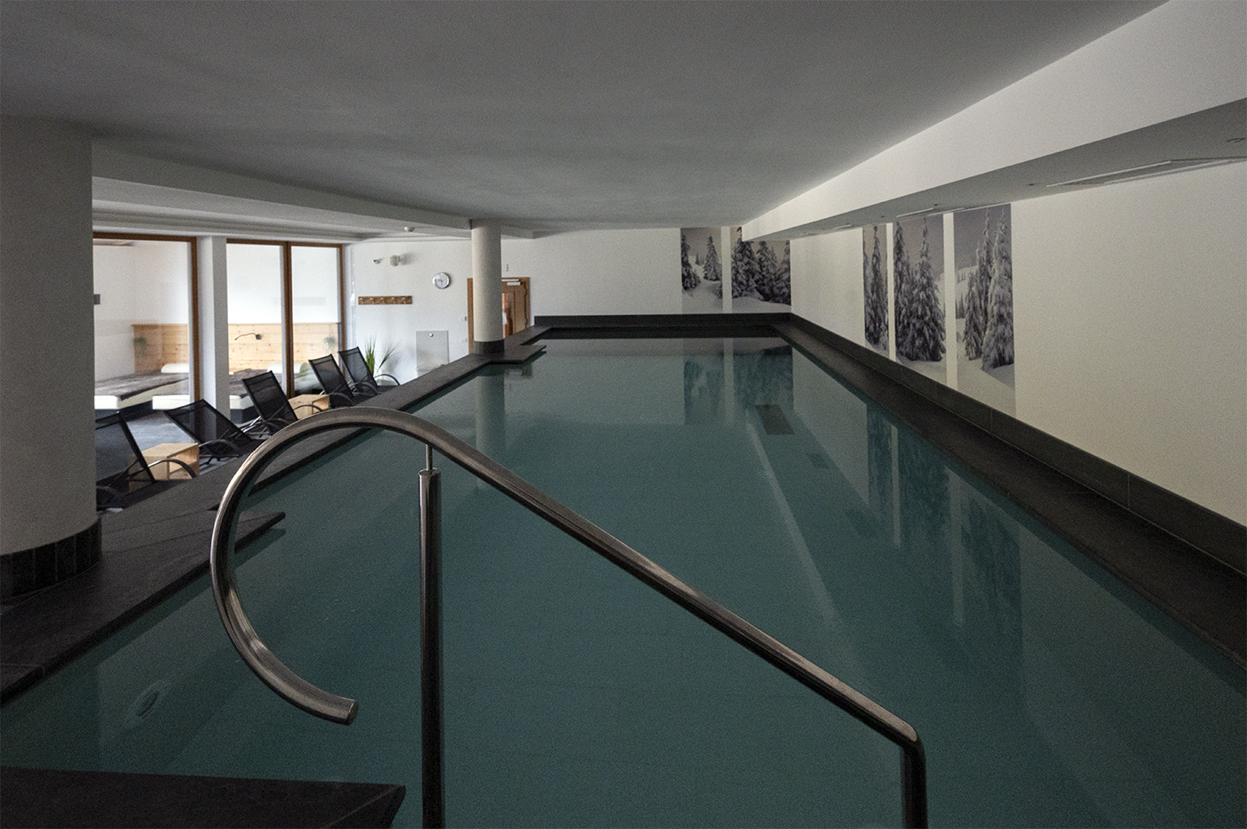 Come resort di tutto rispetto, l’albergo ha una grande area benessere con sauna finlandese dove rigenerarsi dopo una giornata sulle piste da sci e una grande e bella piscina coperta riscaldata con area idromassaggio. Dopo un tuffo si può rigenerarsi davanti alle grandi vetrate sdraiati su lettini ad acqua.